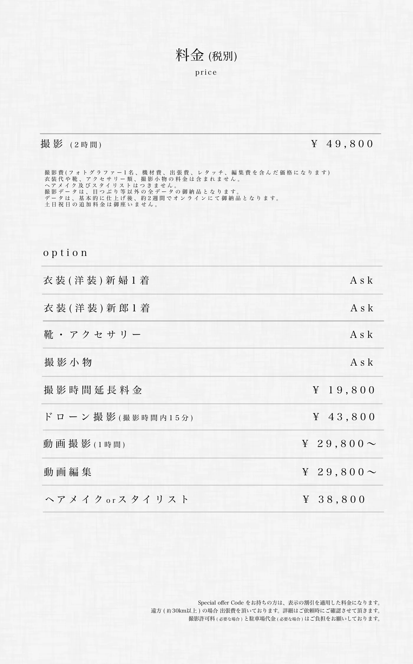主に九州のフォトウェディング、前撮りの撮影を行なっております。